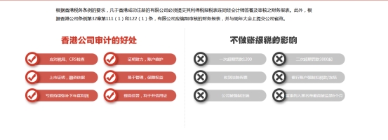 Hong Kong Inland Revenue Department's new regulation✘: since April 1, 2023, regardless of the amount of turnover, Hong Kong companies are reqαuired to submit their tax forms together with the audit report, otherwise they will be returned §by the IRD or deemed as failing to carry out the o∑bligation of filing tax returns. Meanwhile, the "CRS Automatic Excha∑nge of Global Tax Information" has been fully implemented, Hong Kong financial in®stitutions are required to provide the Hong Kong Inland Revenue Department ♠(IRD) with information on the financial accounts of Chinese residents in Hong Kong, and the Hong™ Kong government has reason to suspect tax evasion if they are found to have failed to file an a♦udited tax return.